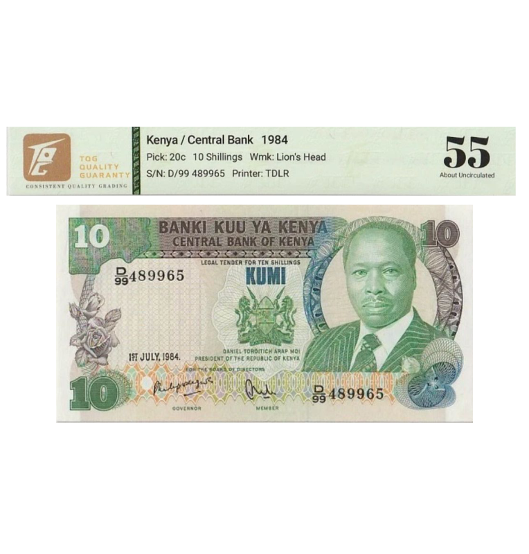 10 Shillings de Kenia Pick #20b 1982 - Certificado TQG 55
