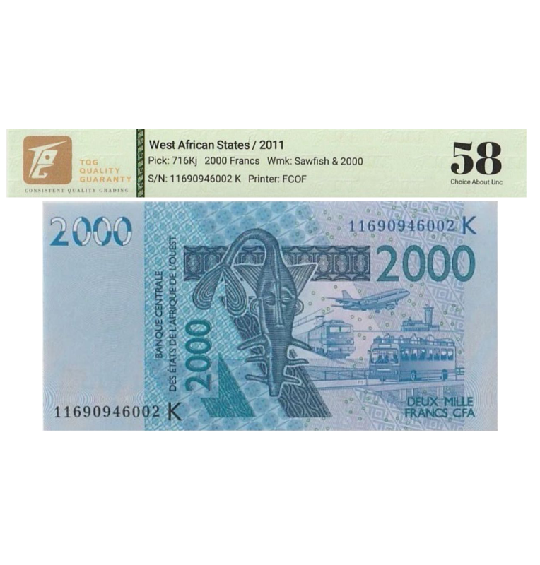 2000 Francs CFA de Estados del África Occidental Pick #216Bv 2022 - Certificado TQG 58